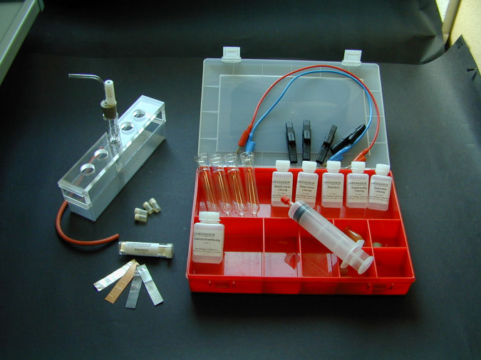 - Alle Lösungen sind in praktikumsgerechten Mengen fertig erhältlich, können aber auch problemlos nach den beiligenden Angaben aus schulüblichen Standardchemikalien selbst angesetzt werden. Das Set enthält bereits fertig etikettierte leere Fläschchen für die Versuchsdurchführung.