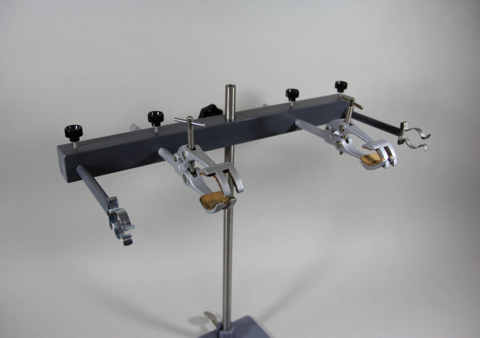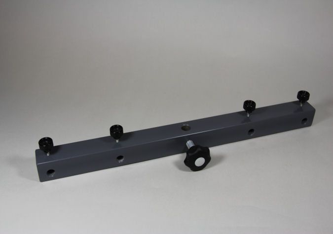 Die Kombistativleiste ist 40 cm lang und hat vier waagrechte Bohrungen Ø 10 mm mit Rändelschraube zur Befestigung von Universalklemmen und Elektrodenhaltern, sowie einer senkrechten Bohrung Ø 13 mm mit Rändelschraube zur Befestigung am Stativ. Optimal für MedTech- Versuche (z.B. mit Quarzrohre oder 60 ml- Kunststoffspritzen, einfach gehaltert mit Stativ- Federklemme).