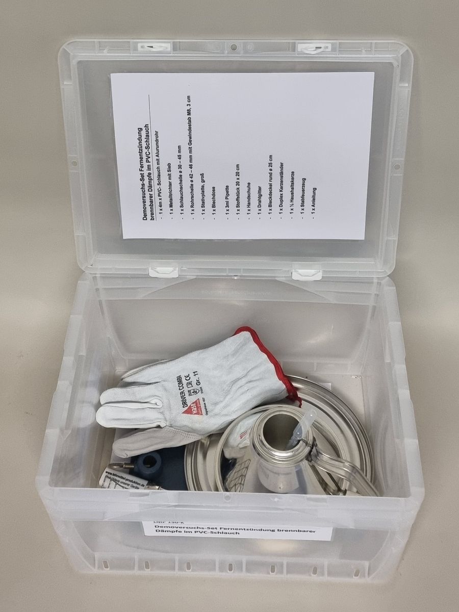 Demoversuch-Set Fernentzündung brennbarer Dämpfe im PVC-Schlauch in Kunststoffkiste