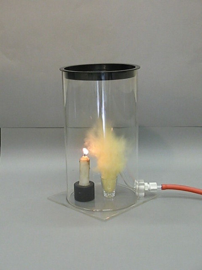 Die Gefahren, die von brennbaren Stäuben durch Verwirbelung in Anwesenheit einer Zündquelle ausgehen, können eindrucksvoll gezeigt werden. Dabei können verschiedene Staubmaterialien, der Einfluss der Feuchtigkeit des Staubes oder die Abhängigkeit von der Staubmenge untersucht werden.