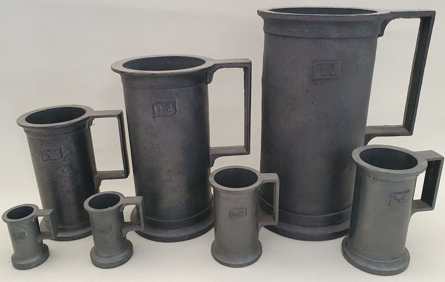 Zinn Messbecher Set, 7 Stück