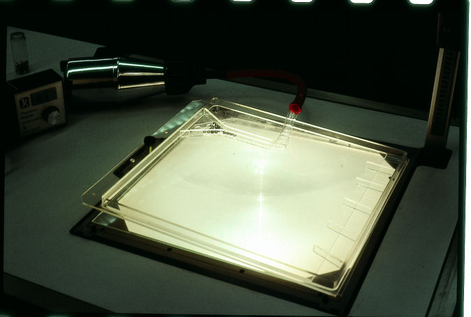 Sollen die entsprechenden Vorgänge und Bauteile eines Massenspektrometers dem Modell gegenüber gestellt werden, kann mit wasserlöslichem Folienschreiber direkt auf den Plexiglaseinsatz geschrieben werden.