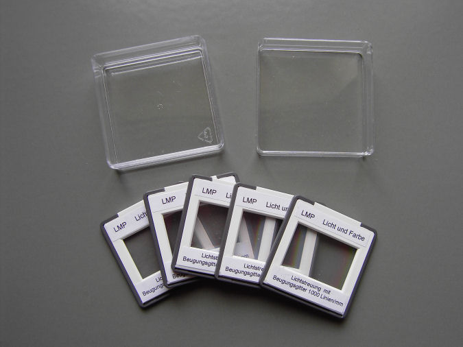 | 5 | Gitterdias 24 x 36 mm (1000 Linien/mm) in Kunststoffrahmen in transparenter Kunststoffbox |