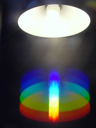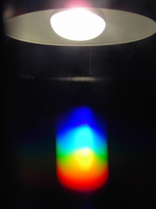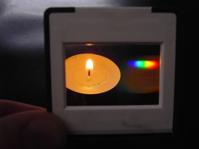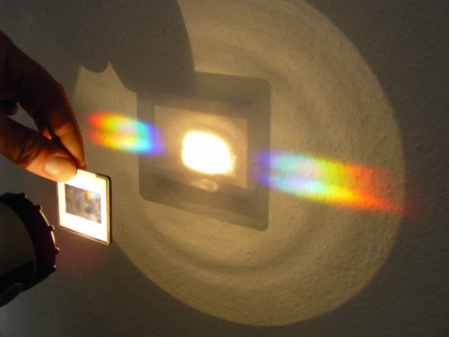 Mit Taschenlampe und Gitterdia kann das Farbspektrum besonders einfach untersucht werden. Die Anleitung enthält neben zahlreichen Versuchsanregungen auch Kopiervorlagen zur Entstehung des Spektrums und zur Anfertigung eines einfachen Spaltes zur besseren Beobachtung.