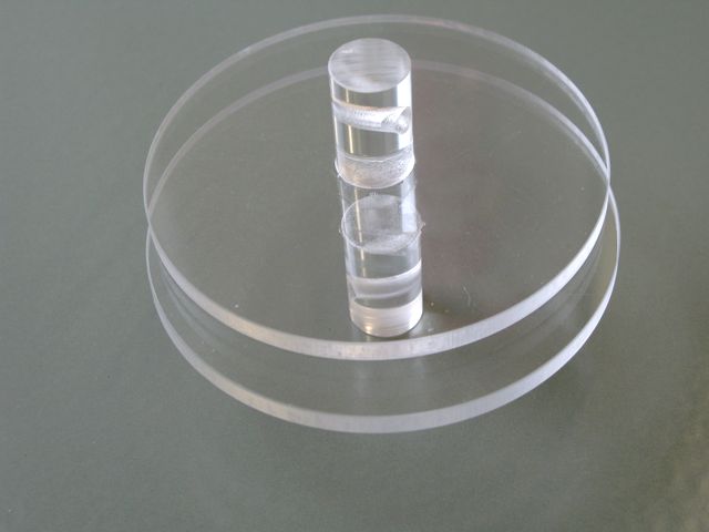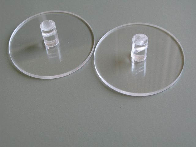 2 Platten aus Plexiglas (Durchmesser 9 cm, Griff mit seitlicher Aufhängebohrung), Anleitung