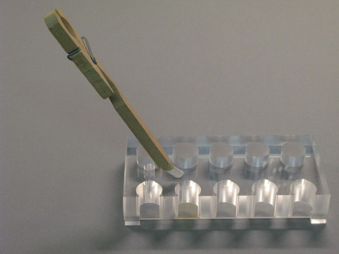 Sehr gute Beobachtbarkeit aller Versuche durch die leichte Neigung des Blocks, der Öffnung in der vorderen Lochreihe und der Transparenz des Plexiglases. Inkl. speziellem Reagenzglashalter.