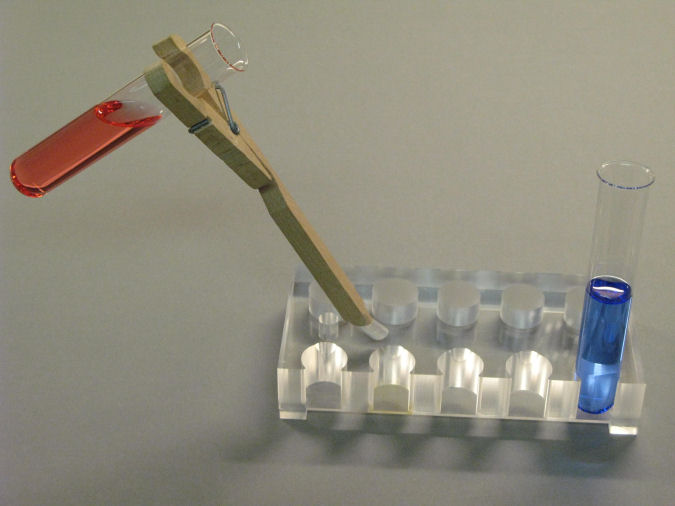 Sehr gute Beobachtbarkeit aller Versuche durch die leichte Neigung des Blocks, der Öffnung in der vorderen Lochreihe und der Transparenz des Plexiglases. Inkl. speziellem Reagenzglashalter.