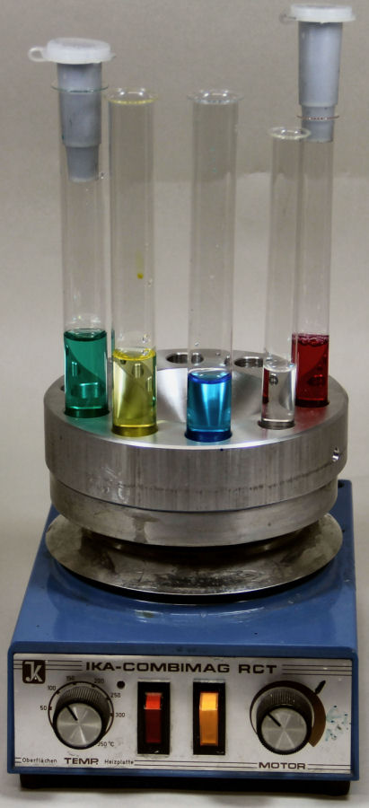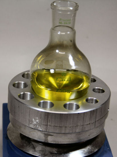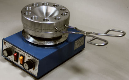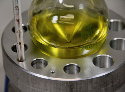 Sicheres Erhitzen  von Reagenzgläsern, Porzellanschalen und Rundkolben mit Magnetrührer oder Heizplatte.
